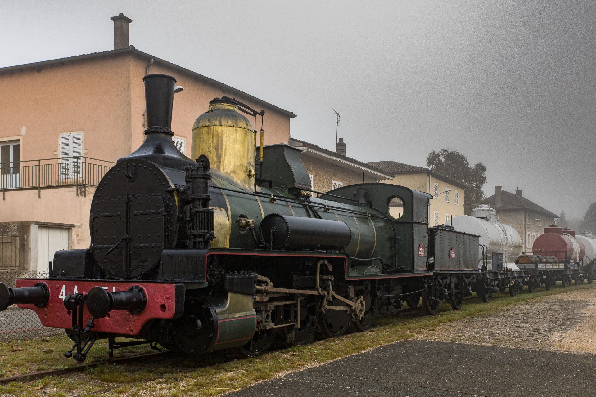 Prol GrA : le hameau DUBOEUF, le hameau du vin, et la gare du vin. Notre arrivée dans la brume matinale .Wagons destinés au transport du vin. © GR