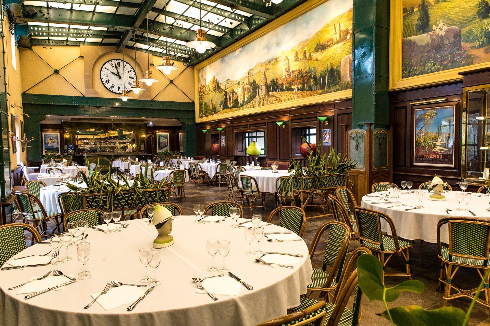 Prol Gr A : le hameau DUBOEUF, le hameau du vin, et la gare du vin. La salle du restaurant : charpente métallique d'origine, du type Eiffel.